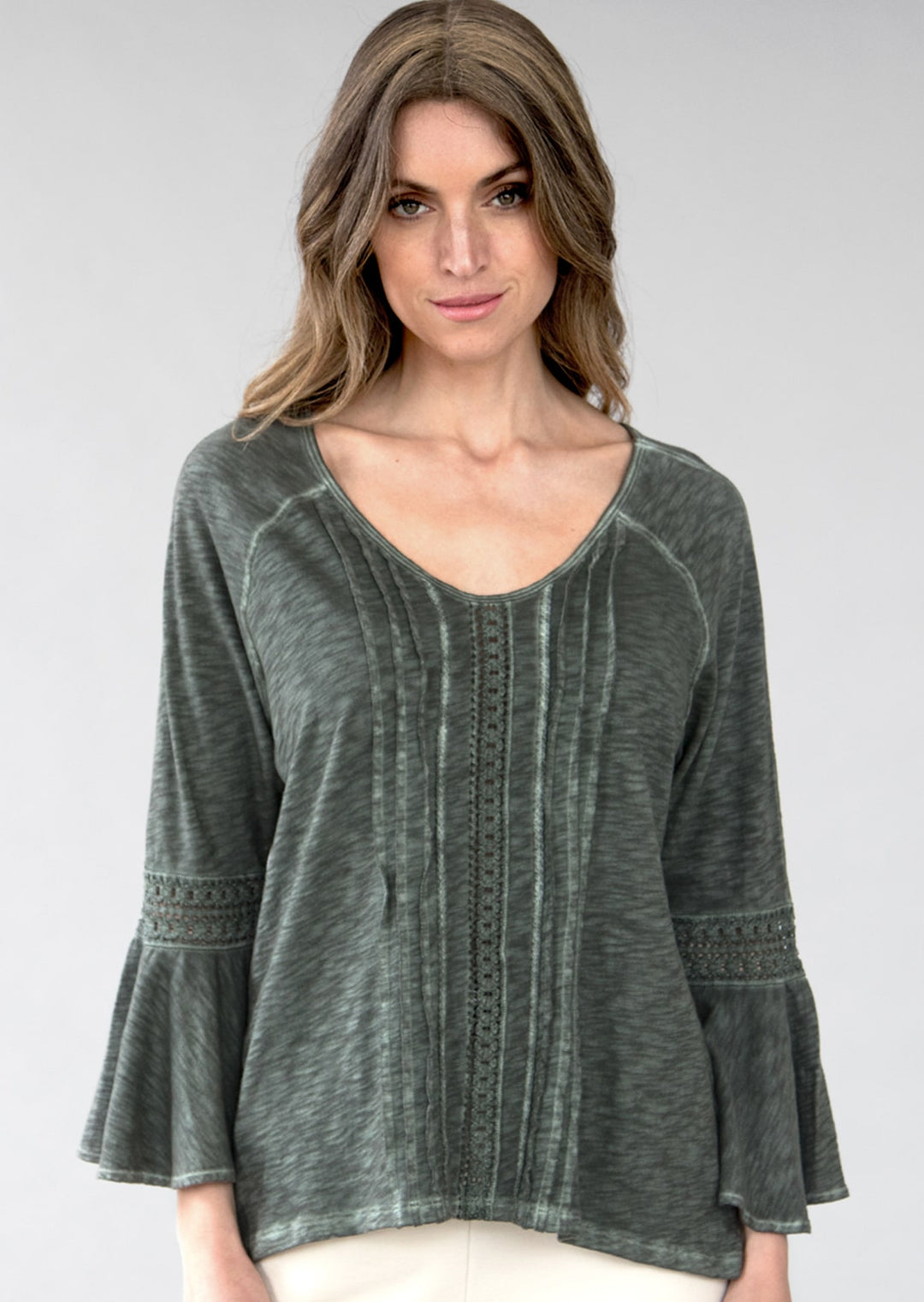 TP-317 Maisie Bell-Sleeve Slub Cotton Top